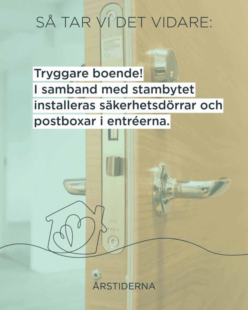 Stambytet är standardhöjande och inkluderar också trygghetsåtgärder som säkerhetsdörr och postboxar i entrén.