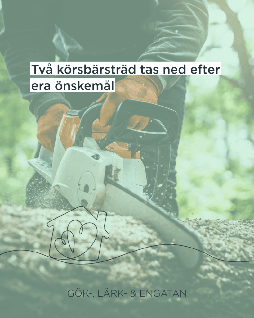 - Två körsbärsträd tas bort enligt önskemål från er boende.